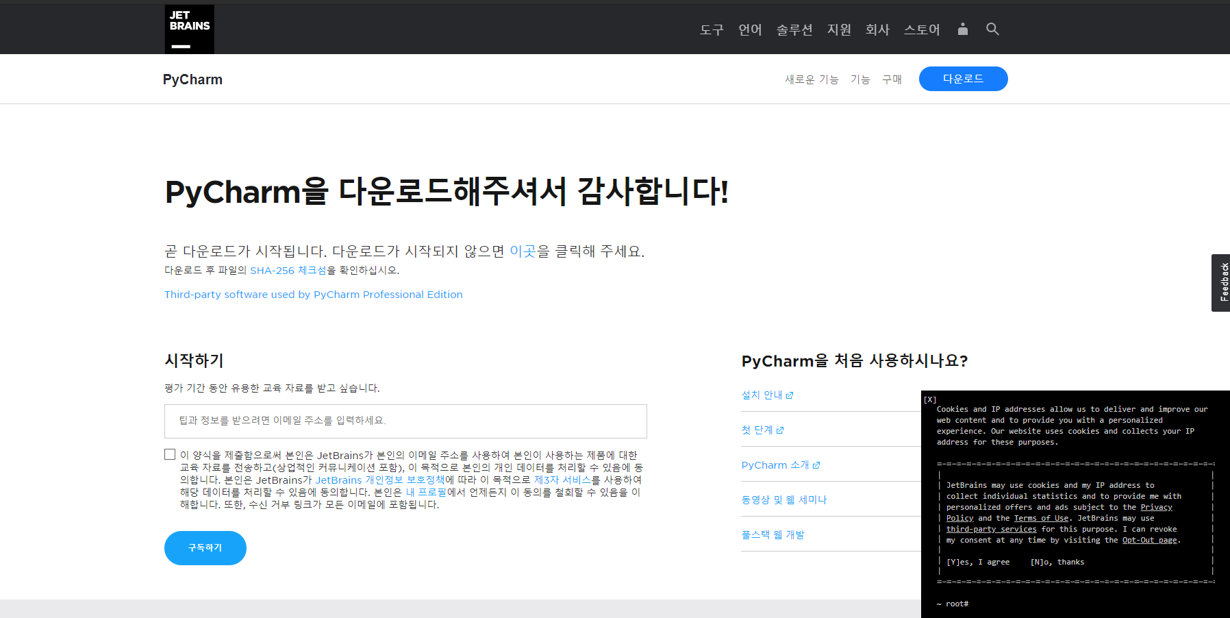 - 파이참 설치 페이지로 이동 : https://www.jetbrains.com/ko-kr/pycharm/