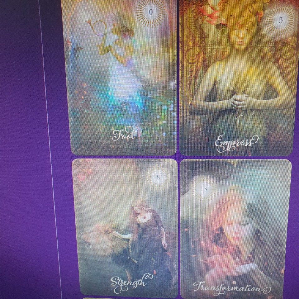 카드는 90 x 128 mm 로 일반적인 타로 덱보다 오라클 카드에 가까운 크기입니다.이 카드들은 꽤 폭이 넓어요. 카드스톡은 최고입니다.가볍고 유연하지만, 얇아서 휘거나 부러지거나 하는 일은 없습니다. 고광택으로 매끄럽게 마감되어 뭉침이나 잘 붙지 않으며 취급도 쉽고 셔플할 수 있습니다. 인쇄 품질은 뛰어남 – 이미지는 선명하고 선명, 흐림, 오인쇄 및 탈색 없습니다.