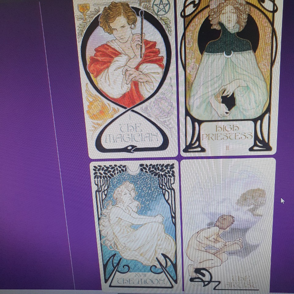 Ethereal Visions는 주로 아르누보를 연상시킨 쿨하고 차분한 이미지의 덱입니다. 이 갑판은 웨이트 스미스 탤롯을 모델로 하고 있습니다.RWS를 잘 아는 사람은, 많은 씬과 상징성을 인식합니다.