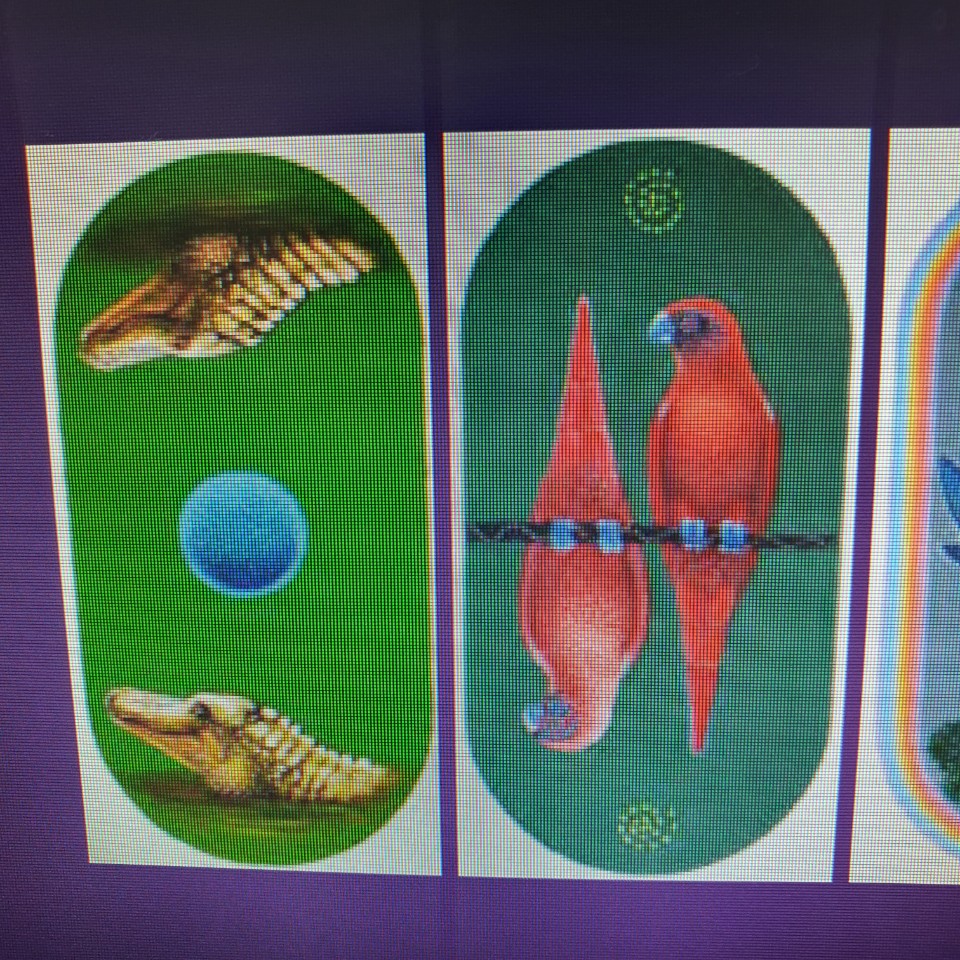 작년 가을, 벨리즈를 여행중에 반짝이는 빨강, 불꽃 오렌지, 노랑, 검정, 은 비즈를 넣은 작은 수세공 동전을 샀습니다. 당시에는 지갑은 필요 없다고 말했지만, 저는 이 호화로운 지갑을 갖고 싶었습니다. 겨우 잘 다룰 수 있었다. 제 최신 데크는 2013년 오라클 타원형의 손바닥 크기의 카드로, 내용물은 편안합니다. 4명의 재규어가 검은 반사 풀을 호위 하는 프린트로, 독자가 카드를 레이아웃 하는, 덱만의 카치프 사이즈의 세노트 천의 스페이스마저 있다. 핸드백에 쏙 들어가는 지갑: 좋죠.