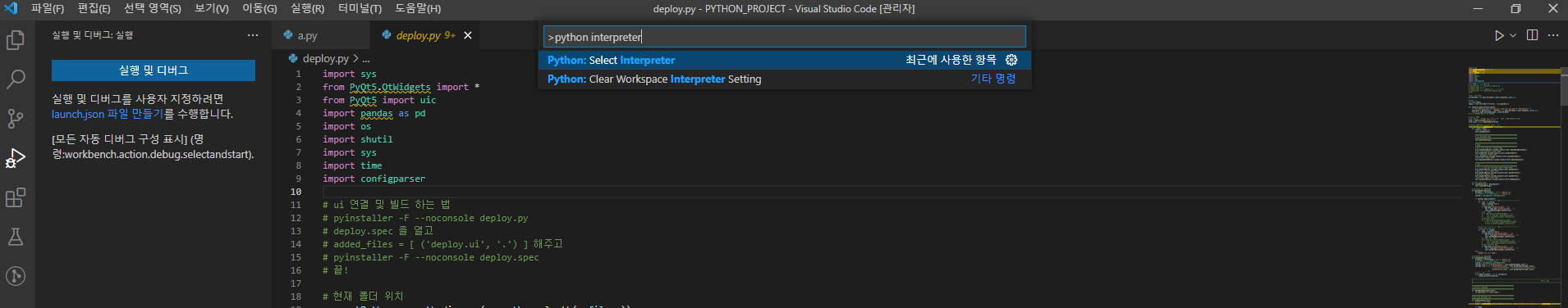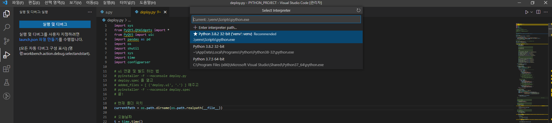 아래처럼 여러개의 python 설정된 곳이 나올텐데