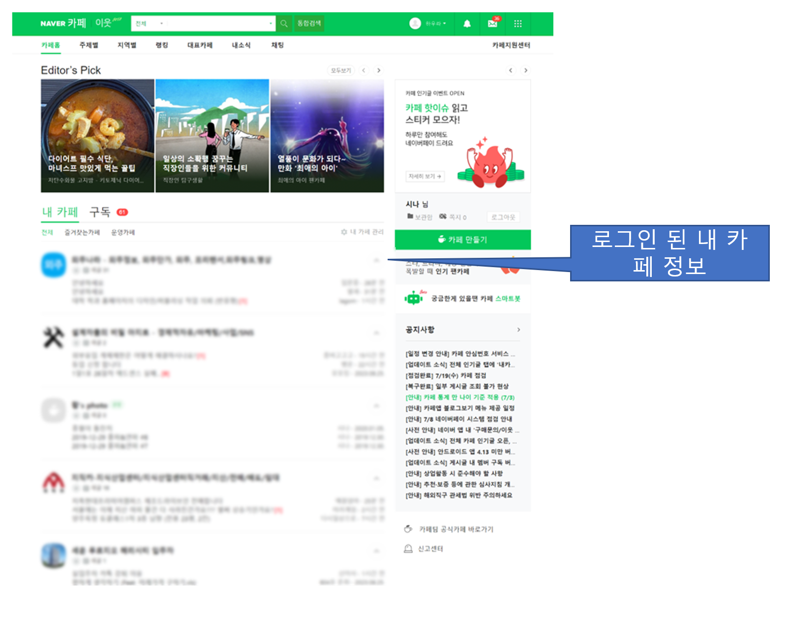 네이버 로그인을 해서 내카페 목록을 긁어 올수는 없을까란 생각을 하였다.