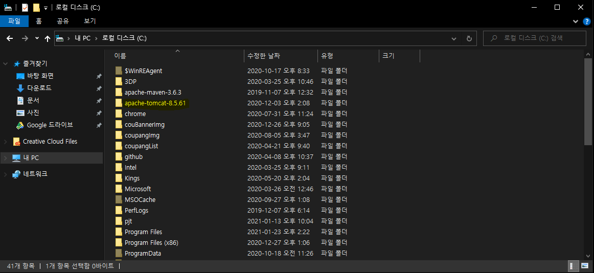 톰캣을 설치해 줍니다.